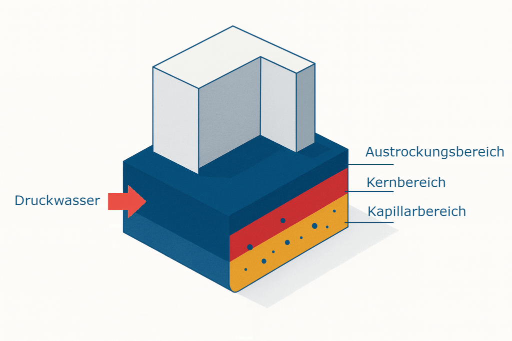 Abdichtungen erdberührter Bauteile haben primär die Aufgabe, Bauwerke gegen Oberflächenwasser sowie gegen das im Boden vorhandene Wasser zu schützen. Die möglichen Wasserarten vor einer erdberührten Bauwerkswand sind im nachfolgenden Schaubild